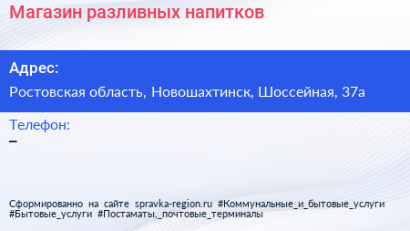 Магазин разливных напитков по адресу Ростовская область, Новошахтинск, Шоссейная, 37а в дальнейшем Организация, размещена в следующих категориях: