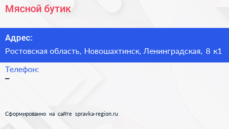 Мясной бутик по адресу Ростовская область, Новошахтинск, Ленинградская, 8 к1 в дальнейшем Организация, размещена в следующих категориях:
