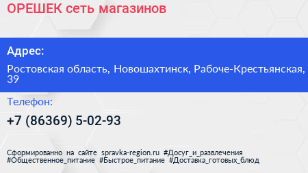 ОРЕШЕК, сеть магазинов по адресу Ростовская область, Новошахтинск, Рабоче-Крестьянская, 39 в дальнейшем Организация, размещена в следующих категориях: