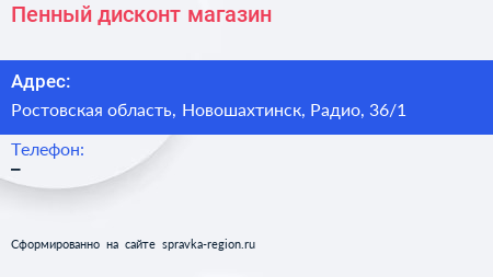 Пенный дисконт, магазин по адресу Ростовская область, Новошахтинск, Радио, 36/1 в дальнейшем Организация, размещена в следующих категориях: