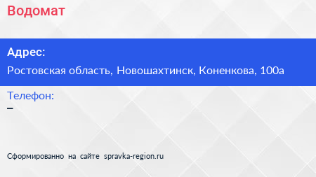 Водомат по адресу Ростовская область, Новошахтинск, Коненкова, 100а в дальнейшем Организация, размещена в следующих категориях:
