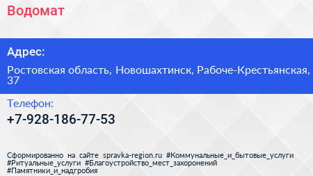 Водомат по адресу Ростовская область, Новошахтинск, Рабоче-Крестьянская, 37 в дальнейшем Организация, размещена в следующих категориях:
