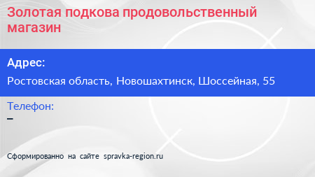 Золотая подкова, продовольственный магазин по адресу Ростовская область, Новошахтинск, Шоссейная, 55 в дальнейшем Организация, размещена в следующих категориях: