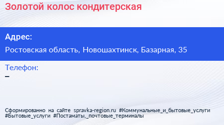 Золотой колос, кондитерская по адресу Ростовская область, Новошахтинск, Базарная, 35 в дальнейшем Организация, размещена в следующих категориях: