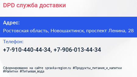 DPD, служба доставки по адресу Ростовская область, Новошахтинск, проспект Ленина, 28 в дальнейшем Организация, размещена в следующих категориях: