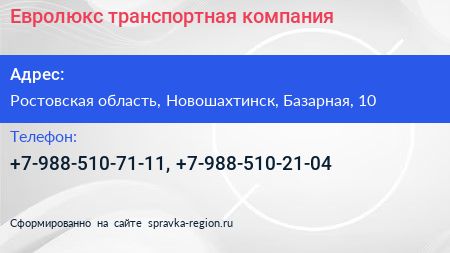 Евролюкс, транспортная компания по адресу Ростовская область, Новошахтинск, Базарная, 10 в дальнейшем Организация, размещена в следующих категориях: