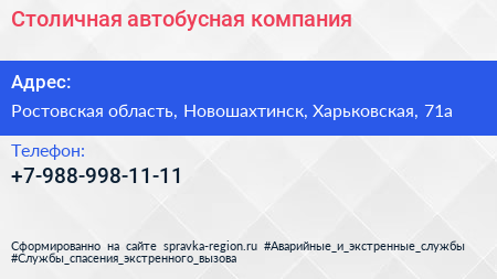 Столичная автобусная компания по адресу Ростовская область, Новошахтинск, Харьковская, 71а в дальнейшем Организация, размещена в следующих категориях: