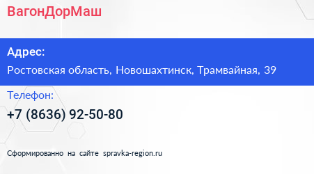 ВагонДорМаш по адресу Ростовская область, Новошахтинск, Трамвайная, 39 в дальнейшем Организация, размещена в следующих категориях: