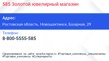 585 Золотой, ювелирный магазин по адресу Ростовская область, Новошахтинск, Базарная, 29 в дальнейшем Организация, размещена в следующих категориях: