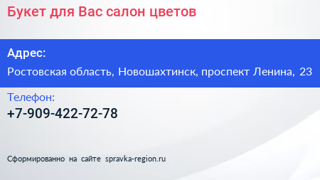 Букет для Вас, салон цветов по адресу Ростовская область, Новошахтинск, проспект Ленина, 23 в дальнейшем Организация, размещена в следующих категориях: