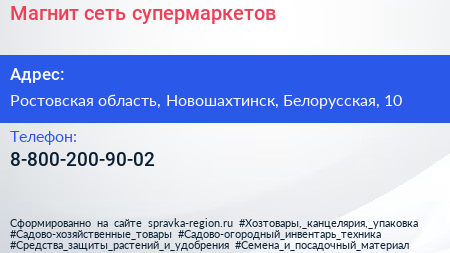 Магнит, сеть супермаркетов по адресу Ростовская область, Новошахтинск, Белорусская, 10 в дальнейшем Организация, размещена в следующих категориях: