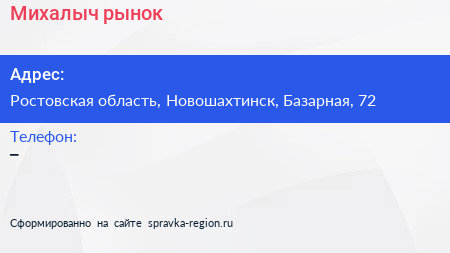 Михалыч, рынок по адресу Ростовская область, Новошахтинск, Базарная, 72 в дальнейшем Организация, размещена в следующих категориях: