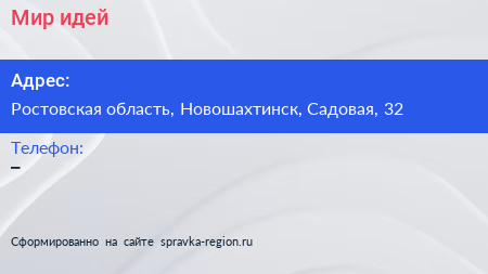 Мир идей по адресу Ростовская область, Новошахтинск, Садовая, 32 в дальнейшем Организация, размещена в следующих категориях: