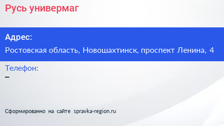 Русь, универмаг по адресу Ростовская область, Новошахтинск, проспект Ленина, 4 в дальнейшем Организация, размещена в следующих категориях: