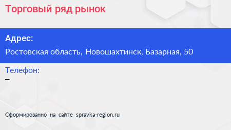 Торговый ряд, рынок по адресу Ростовская область, Новошахтинск, Базарная, 50 в дальнейшем Организация, размещена в следующих категориях: