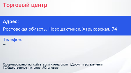 Торговый центр по адресу Ростовская область, Новошахтинск, Харьковская, 74 в дальнейшем Организация, размещена в следующих категориях: