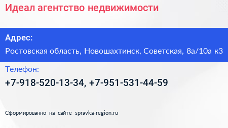 Идеал, агентство недвижимости по адресу Ростовская область, Новошахтинск, Советская, 8а/10а к3 в дальнейшем Организация, размещена в следующих категориях:
