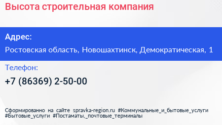 Высота, строительная компания по адресу Ростовская область, Новошахтинск, Демократическая, 1 в дальнейшем Организация, размещена в следующих категориях: