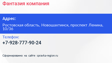 Фантазия, компания по адресу Ростовская область, Новошахтинск, проспект Ленина, 10/36 в дальнейшем Организация, размещена в следующих категориях: