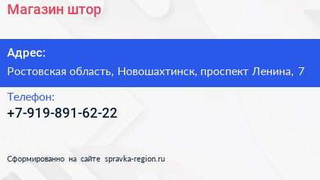 Магазин штор по адресу Ростовская область, Новошахтинск, проспект Ленина, 7 в дальнейшем Организация, размещена в следующих категориях: