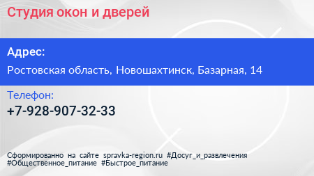 Студия окон и дверей по адресу Ростовская область, Новошахтинск, Базарная, 14 в дальнейшем Организация, размещена в следующих категориях: