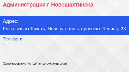 Администрация г. Новошахтинска по адресу Ростовская область, Новошахтинск, проспект Ленина, 28 в дальнейшем Организация, размещена в следующих категориях: