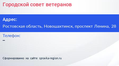 Городской совет ветеранов по адресу Ростовская область, Новошахтинск, проспект Ленина, 28 в дальнейшем Организация, размещена в следующих категориях: