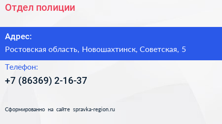 Отдел полиции по адресу Ростовская область, Новошахтинск, Советская, 5 в дальнейшем Организация, размещена в следующих категориях: