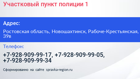 Участковый пункт полиции №1 по адресу Ростовская область, Новошахтинск, Рабоче-Крестьянская, 39в в дальнейшем Организация, размещена в следующих категориях: