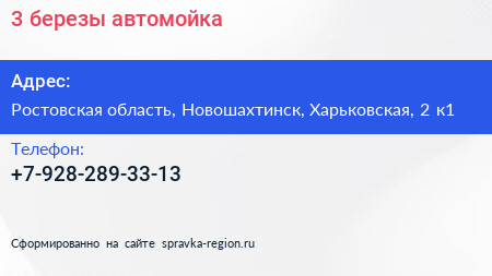 3 березы, автомойка по адресу Ростовская область, Новошахтинск, Харьковская, 2 к1 в дальнейшем Организация, размещена в следующих категориях: