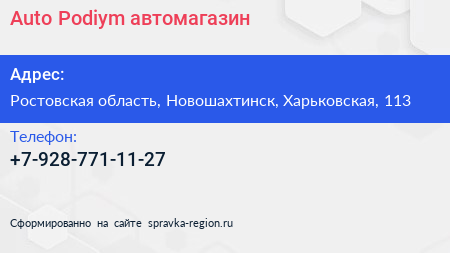 Auto-Podiym, автомагазин по адресу Ростовская область, Новошахтинск, Харьковская, 113 в дальнейшем Организация, размещена в следующих категориях: