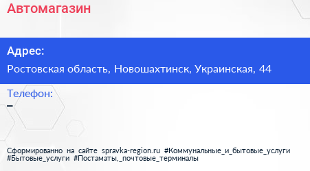 Автомагазин по адресу Ростовская область, Новошахтинск, Украинская, 44 в дальнейшем Организация, размещена в следующих категориях: