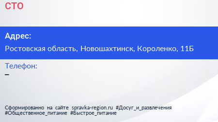 СТО по адресу Ростовская область, Новошахтинск, Короленко, 11Б в дальнейшем Организация, размещена в следующих категориях: