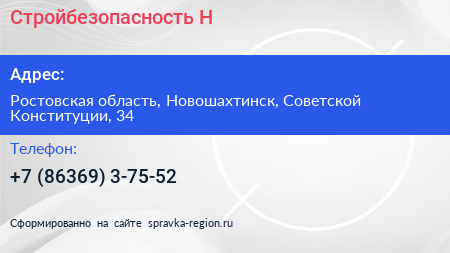 Стройбезопасность-Н по адресу Ростовская область, Новошахтинск, Советской Конституции, 34 в дальнейшем Организация, размещена в следующих категориях: