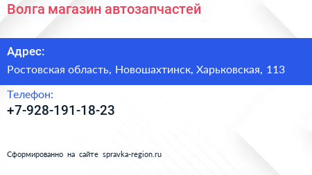 Волга, магазин автозапчастей по адресу Ростовская область, Новошахтинск, Харьковская, 113 в дальнейшем Организация, размещена в следующих категориях: