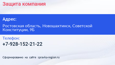 Защита, компания по адресу Ростовская область, Новошахтинск, Советской Конституции, 9Б в дальнейшем Организация, размещена в следующих категориях: