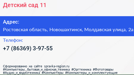 Детский сад №11 по адресу Ростовская область, Новошахтинск, Молдавская улица, 2а в дальнейшем Организация, размещена в следующих категориях:
