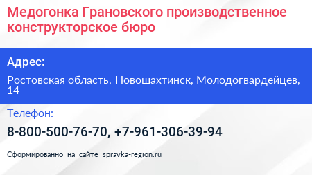 Медогонка Грановского, производственное конструкторское бюро по адресу Ростовская область, Новошахтинск, Молодогвардейцев, 14 в дальнейшем Организация, размещена в следующих категориях: