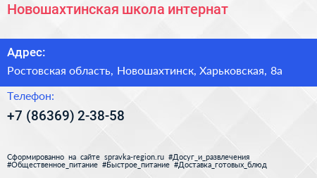 Новошахтинская школа-интернат по адресу Ростовская область, Новошахтинск, Харьковская, 8а в дальнейшем Организация, размещена в следующих категориях: