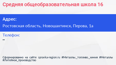 Средняя общеобразовательная школа №16 по адресу Ростовская область, Новошахтинск, Перова, 1а в дальнейшем Организация, размещена в следующих категориях: