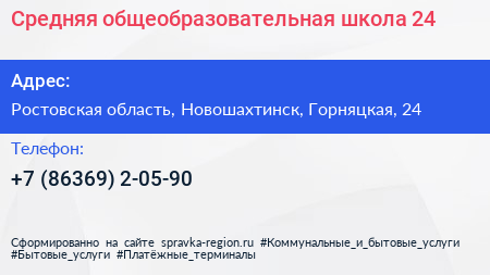 Средняя общеобразовательная школа №24 по адресу Ростовская область, Новошахтинск, Горняцкая, 24 в дальнейшем Организация, размещена в следующих категориях:
