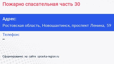 Пожарно-спасательная часть №30 по адресу Ростовская область, Новошахтинск, проспект Ленина, 59 в дальнейшем Организация, размещена в следующих категориях: