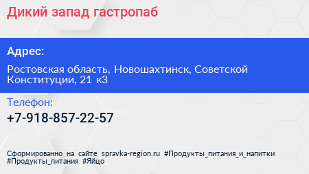 Дикий запад, гастропаб по адресу Ростовская область, Новошахтинск, Советской Конституции, 21 к3 в дальнейшем Организация, размещена в следующих категориях: