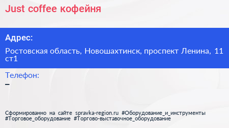 Just coffee, кофейня по адресу Ростовская область, Новошахтинск, проспект Ленина, 11 ст1 в дальнейшем Организация, размещена в следующих категориях: