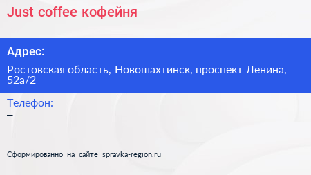 Just coffee, кофейня по адресу Ростовская область, Новошахтинск, проспект Ленина, 52а/2 в дальнейшем Организация, размещена в следующих категориях: