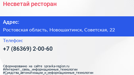 Несветай, ресторан по адресу Ростовская область, Новошахтинск, Советская, 22 в дальнейшем Организация, размещена в следующих категориях: