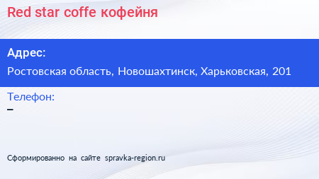 Red star coffe, кофейня по адресу Ростовская область, Новошахтинск, Харьковская, 201 в дальнейшем Организация, размещена в следующих категориях: