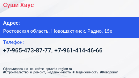 Суши Хаус по адресу Ростовская область, Новошахтинск, Радио, 15е в дальнейшем Организация, размещена в следующих категориях: