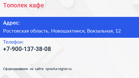 Тополек, кафе по адресу Ростовская область, Новошахтинск, Вокзальная, 12 в дальнейшем Организация, размещена в следующих категориях: