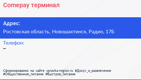 Comepay, терминал по адресу Ростовская область, Новошахтинск, Радио, 17Б в дальнейшем Организация, размещена в следующих категориях: